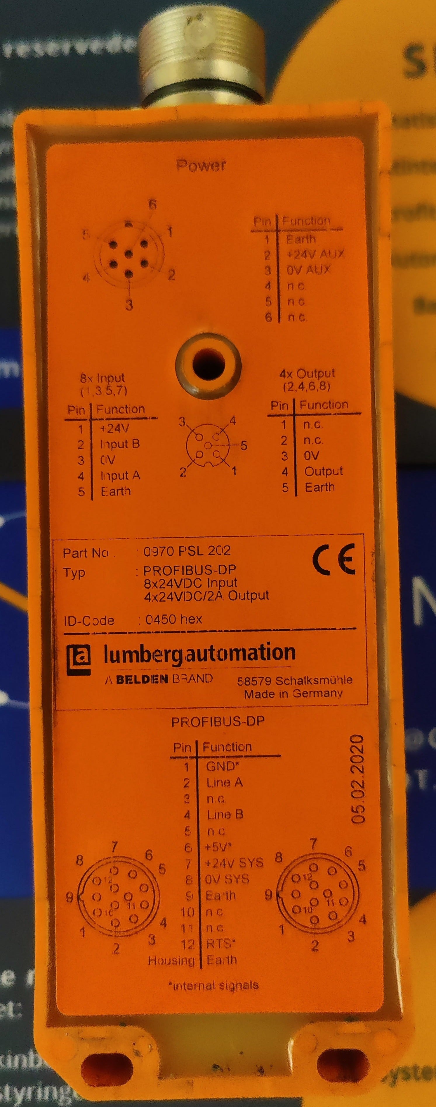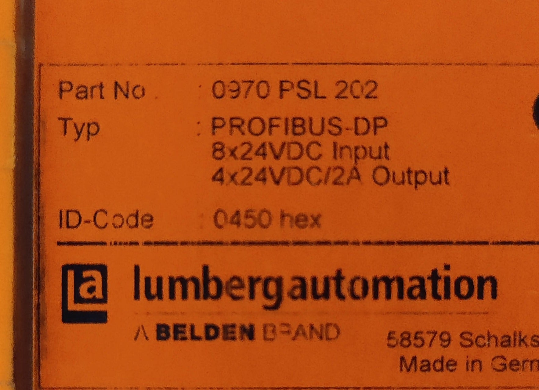 Lumberg, Profibus-DP, 8x24vdc Input / 4x24vdc (2A) Output (0970 PSL 202)