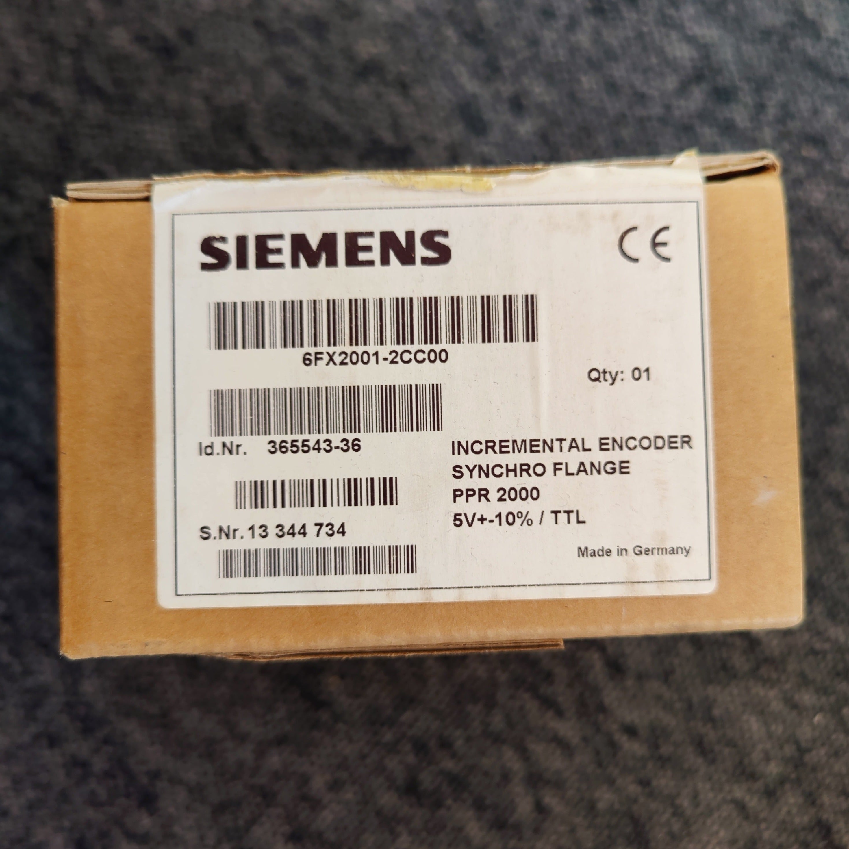 Siemens betegnelse: INCREM. ENCODER 6FX2001-2CC00 WITH RS 422 (TTL), 2000 P/R, SYNCHRO-FLANGE SHAFT 6MM OPERATING VOLTAGE: 5 V UNIVERSAL CABLE OUTLET AXIAL / RADIAL CABLE 1M WITH CONNECTOR.