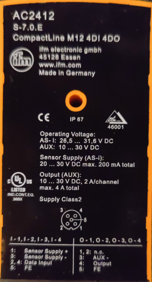 IFM, AS-i, CompactLine M12, 4DI, 4DO (AC2412)
