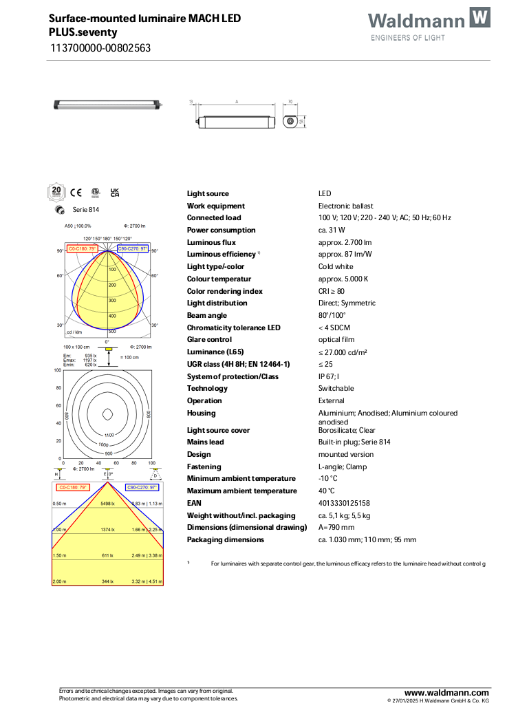 Maskinlampe, MQAL 60 N - 230Vac MACH LED PLUS (113700000-00802563)