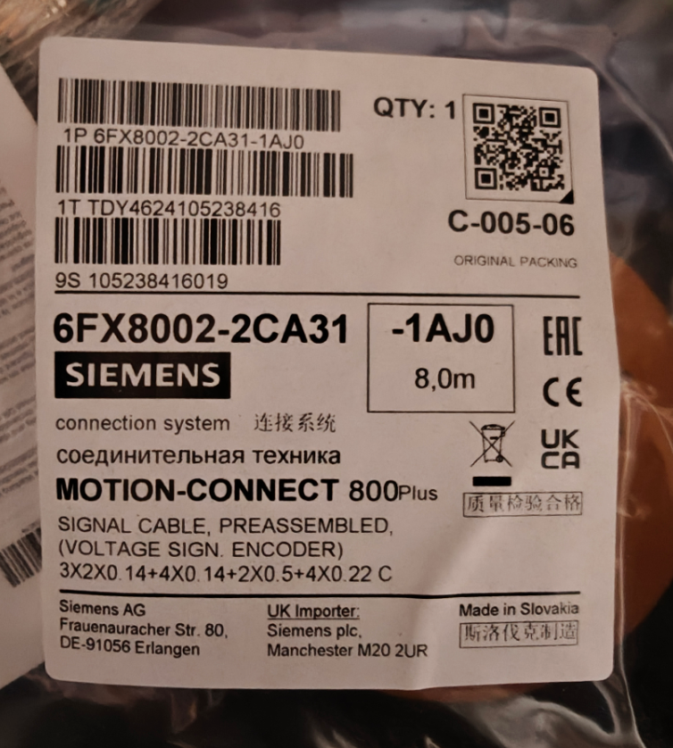Signal cable pre-assembled for incr. encoder with C/D tracks integrated into the motor 3x (2x0.14) C+4x 0.14+2x0.5 +4x 0.22 C Connector full thread M23 MOTION-CONNECT 800PLUS trailable UL/CSA DESINA Dmax=9.8 mm Length (m)= TYPE: 6FX8002-2CA31